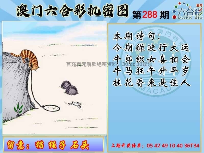 288期诗句:今期绿波行大运,牛郎织女喜相会,牛马狂午升平岁,桂花香来是佳人